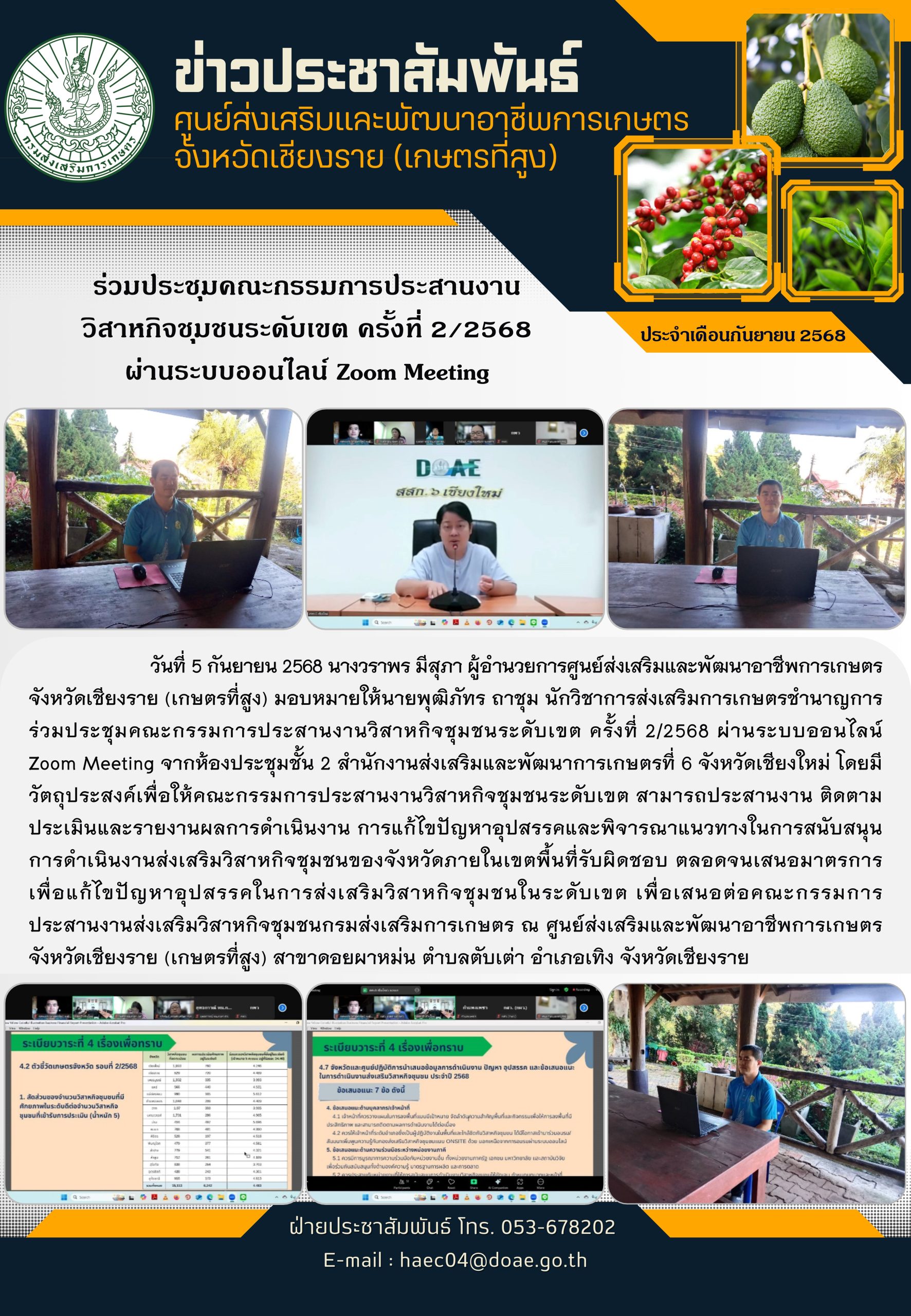 ร่วมประชุมคณะกรรมการประสานงานวิสาหกิจชุมชนระดับเขต ครั้งที่ 2/2568 Posted on September 10, 2025September 10, 2025 by ผู้ดูแลระบบ