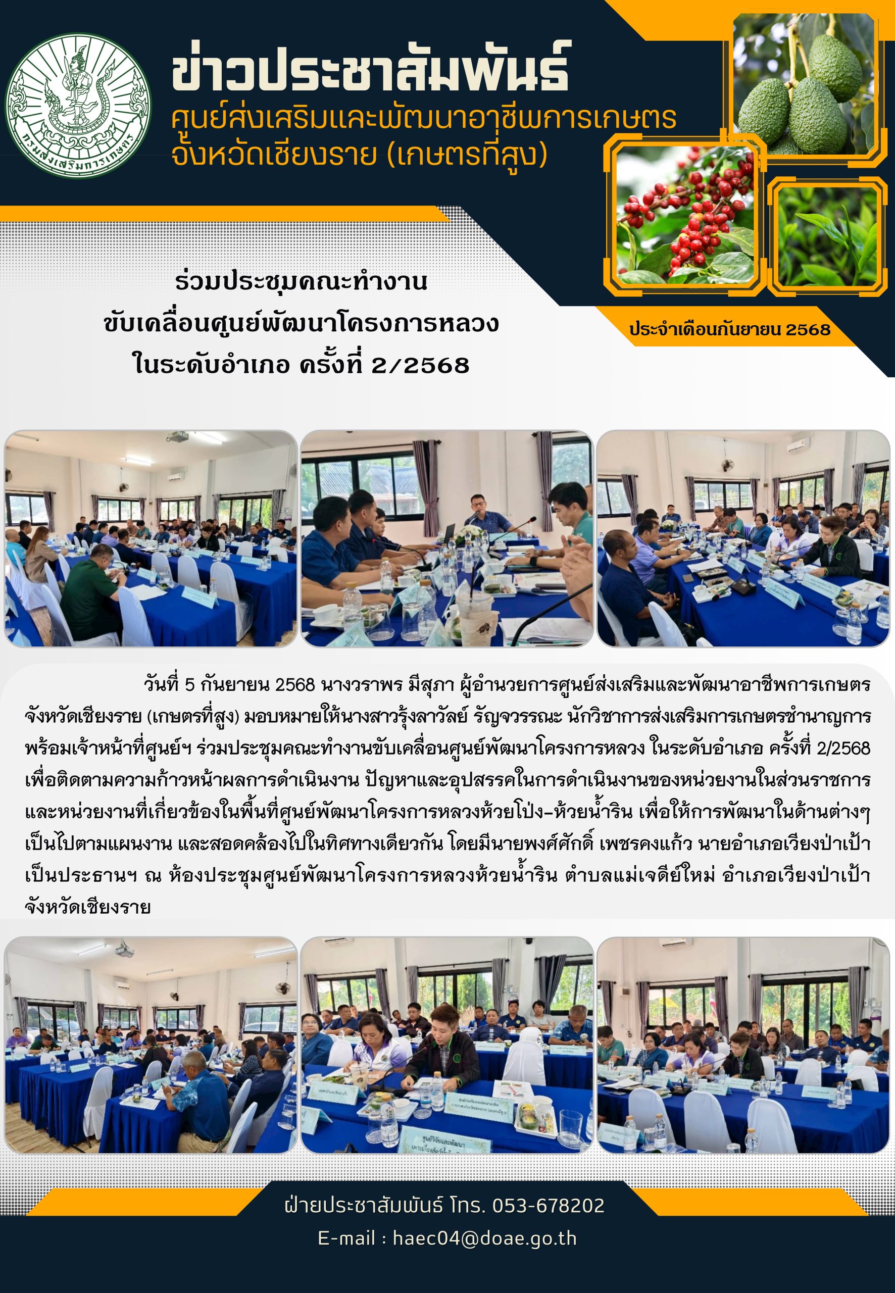 ร่วมประชุมคณะทำงานขับเคลื่อนศูนย์พัฒนาโครงการหลวง ในระดับอำเภอ ครั้งที่ 2/2568 Posted on September 10, 2025September 10, 2025 by ผู้ดูแลระบบ