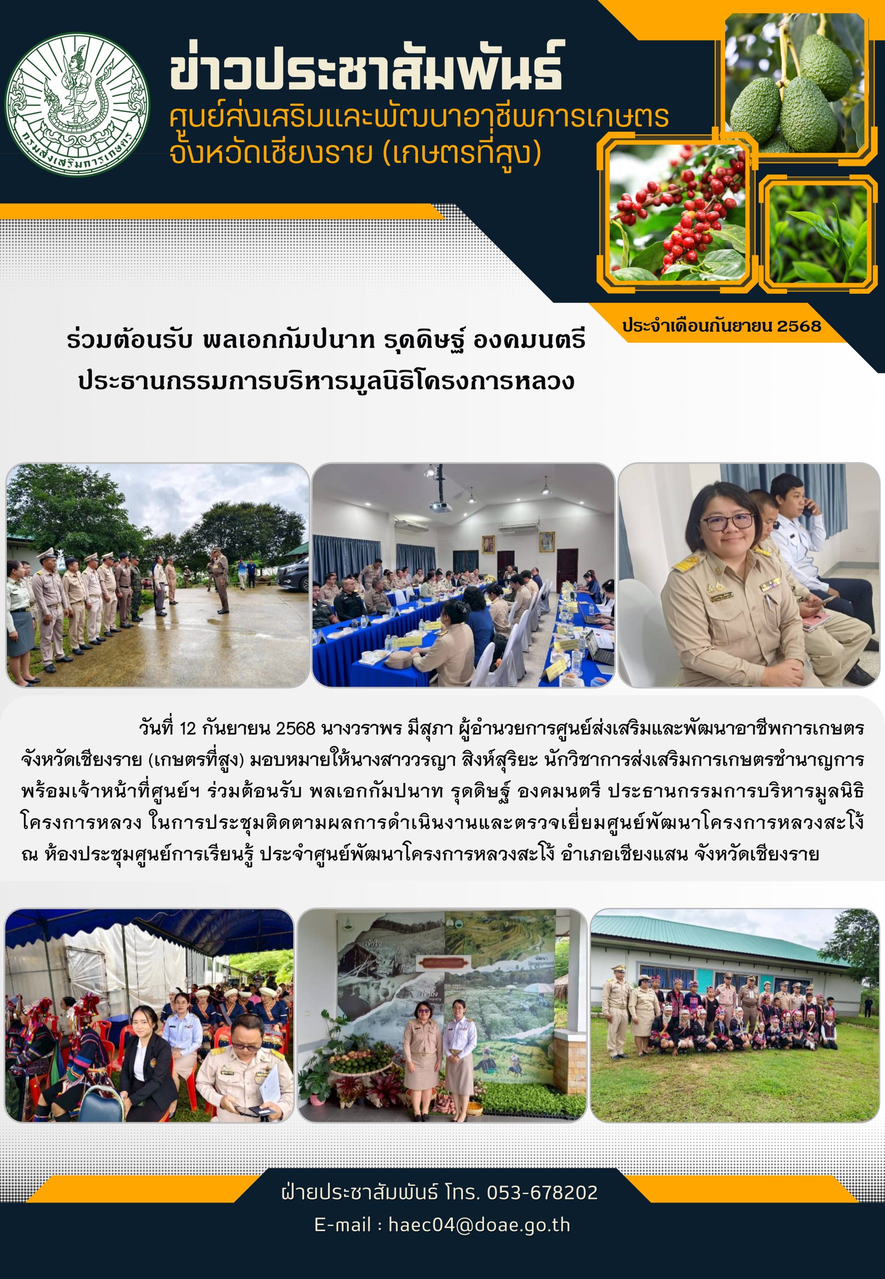 ร่วมต้อนรับ พลเอกกัมปนาท รุดดิษฐ์ องคมนตรี ประธานกรรมการบริหารมูลนิธิโครงการหลวง Posted on September 26, 2025September 26, 2025 by ผู้ดูแลระบบ