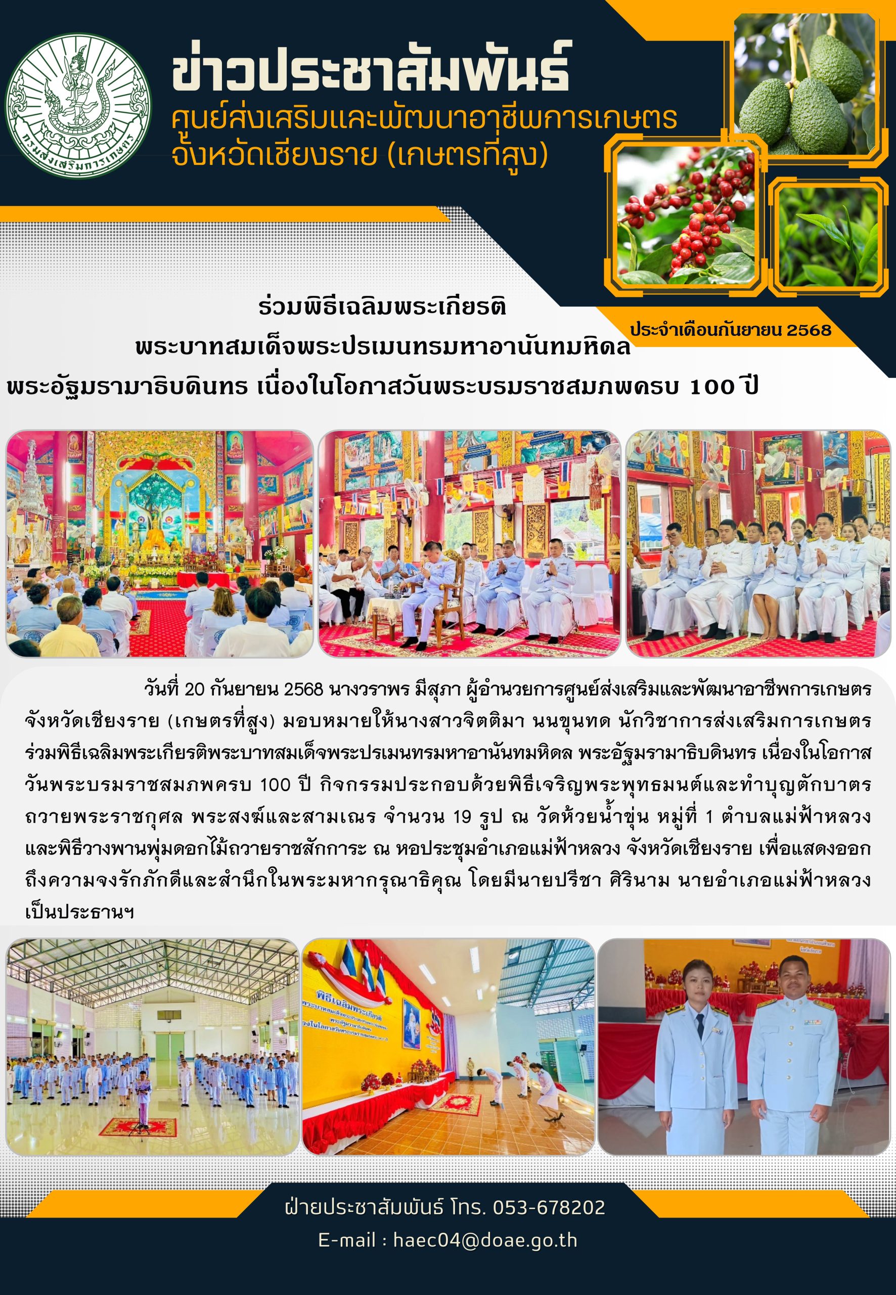 ร่วมพิธีเฉลิมพระเกียรติพระบาทสมเด็จพระปรเมนทรมหาอานันทมหิดล พระอัฐมรามาธิบดินทร เนื่องในโอกาสวันพระบรมราชสมภพครบ 100 ปี Posted on September 26, 2025September 26, 2025 by ผู้ดูแลระบบ